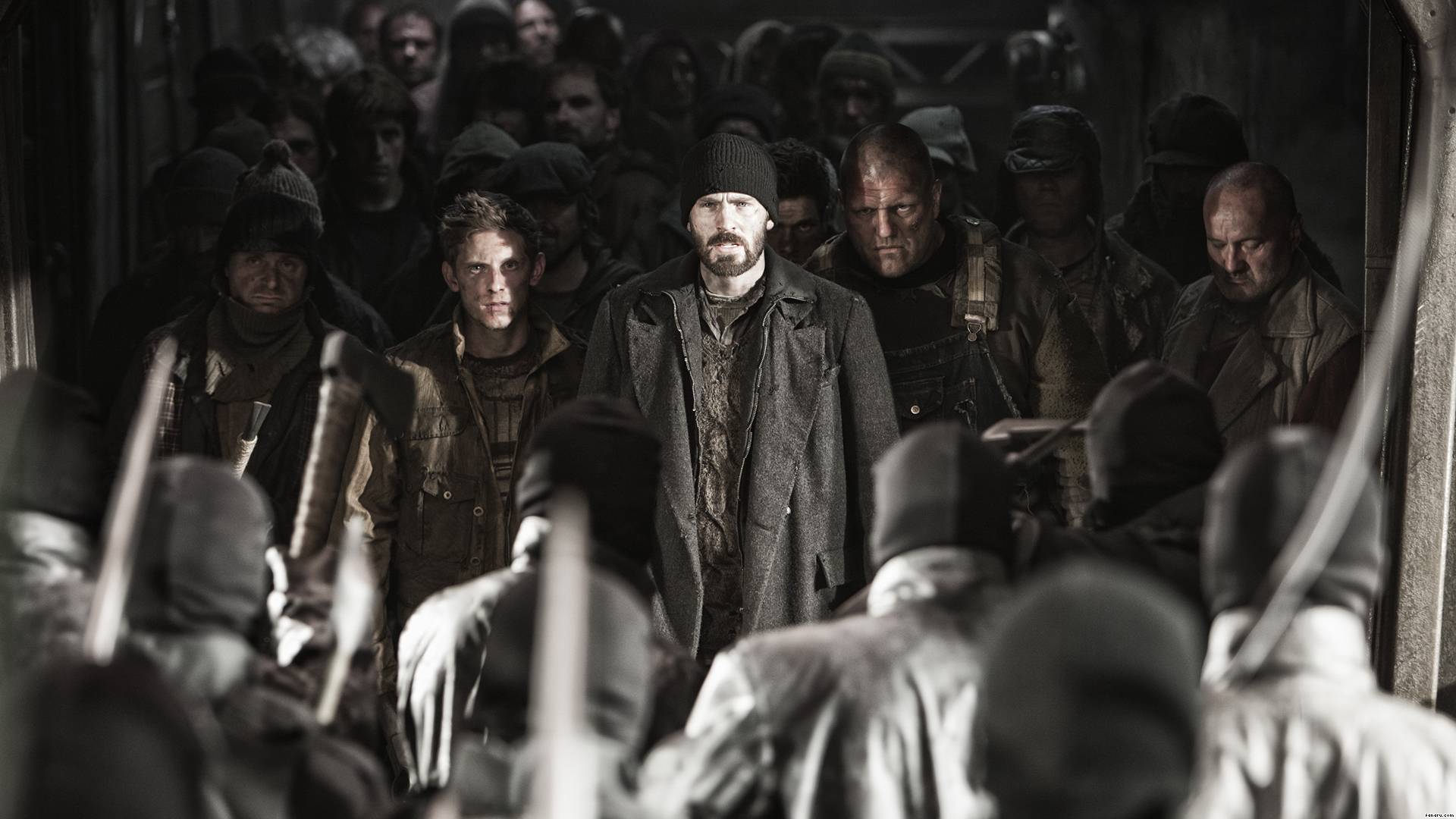 MOVIE REVIEW: A couple of nights ago, I got to see the movie “Snowpiercer” which stars Chris Evans (Captain America: The Winter Soldier, Fantastic Four), Kang-ho Song (The Host [2006], Memories of Murder), Ed Harris (Gravity, A Beautiful Mind), John Hurt (Alien, Hellboy), Tilda Swinton (The Chronicles of Narnia: The Lion, the Witch, and the Wardrobe, Constantine), Jamie Bell (Jumper, The Adventures of Tintin [2011]), Octavia Spencer (The Help, Fruitvale Station), Ewen Bremner (Pearl Harbor, Black Hawk Down), and Ah-sung Ko (A Brand New Life, Thread of Lies). This movie is set in a post-apocalyptic world where the Earth has frozen over, leaving the last of humanity to survive on an ongoing train. The poor lives in the tail section of the train with very harsh conditions while the rich people live in the front of the train with several luxuries. It centers on a man named Curtis (Evans) who makes a plan to storm through the train with everyone in the tail section to claim the whole train as their own so they don’t have to live in their awful conditions. Tragedy awaits them at every turn though, and the more they travel through the travel, the more dangerous it becomes.