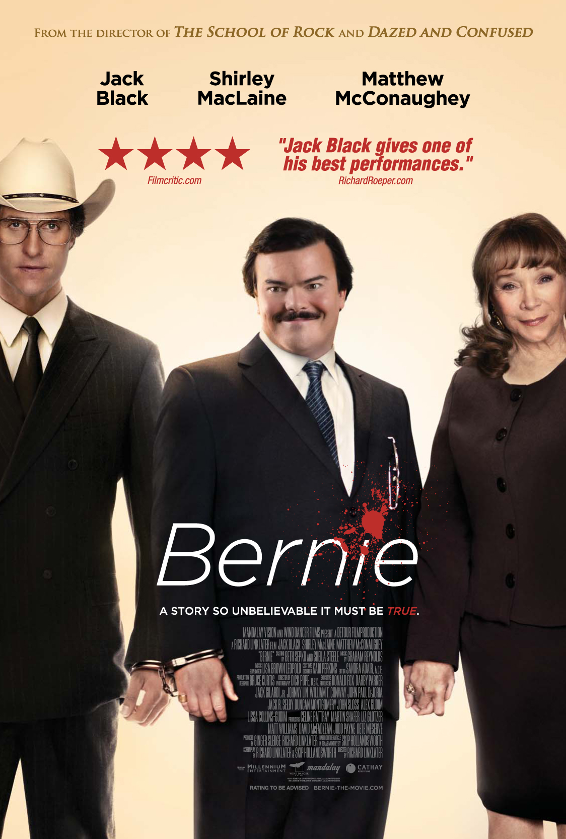 FRIDAY NIGHT MOVIE REVIEW: “Bernie” stars Jack Black (Tropic Thunder, The Cable Guy), Shirley MacLaine (The Apartment, The Secret Life of Walter Mitty), and Matthew McConaughey (Mud, Interstellar). It is directed by Richard Linklater (Boyhood, School of Rock). Based on a true story, this movie revolves around a man named Bernie Tiede (Black), who is loved by everyone in the town of Carthage, Texas ever since he arrived there. He is an undertaker and takes pride in his job, while also helping the townspeople by getting involved in town activities as well as the church of Carthage, where he sings. One day, a rich woman named Marjorie Nugent’s (MacLaine) husband dies, leaving her alone. She is hated by everyone…except Bernie. He tries to reach out to her after the funeral and she soon takes a liking to him. That liking begins to consume Bernie, with her being jealous of the time he spends with others and eventually treating him like her property because of how she doesn’t want to be alone. Soon Bernie can’t take it anymore, driving him to an action that will haunt him the rest of his life.