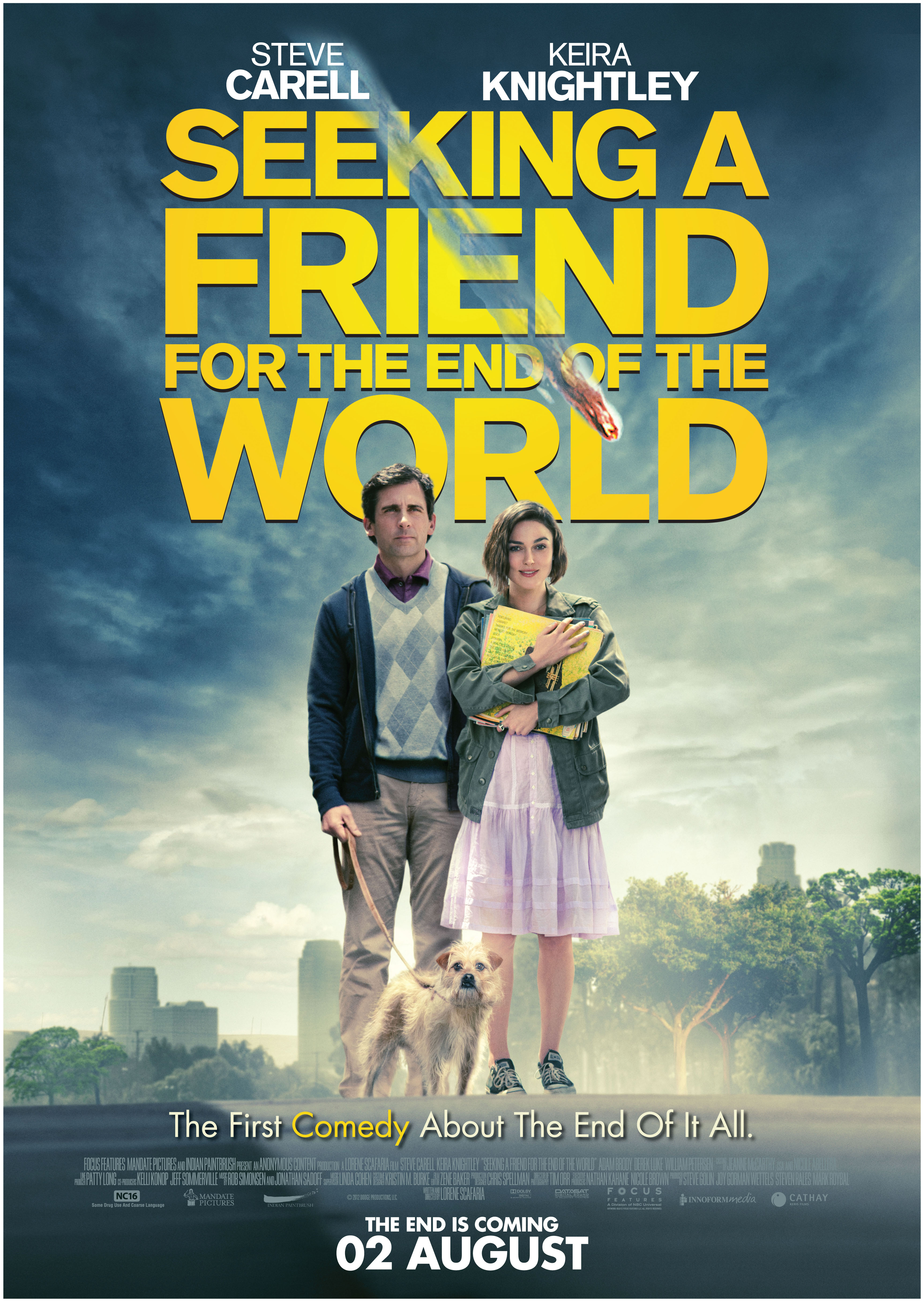 FRIDAY NIGHT MOVIE REVIEW: On Friday, I saw “Seeking a Friend for the End of the World,” which stars Steve Carell (The Way Way Back, Foxcatcher), Keira Knightley (Begin Again, Pirates of the Caribbean: Dead Man’s Chest), and Martin Sheen (The Vessel, Catch Me If You Can). It is written and directed by Lorene Scafaria (Nick and Norah’s Infinite Playlist, The Meddler). The end of the world is close, as earth’s inhabitants prepare for a cataclysmic meteor strike to break through their atmosphere. Amongst the people, one man, Dodge (Carell), sets out to be with an old flame one last time in order to make amends. However, he has to bring along a woman from his apartment complex, as she needs a ride to visit her family. Their travels to be with loved ones will create interesting situations.