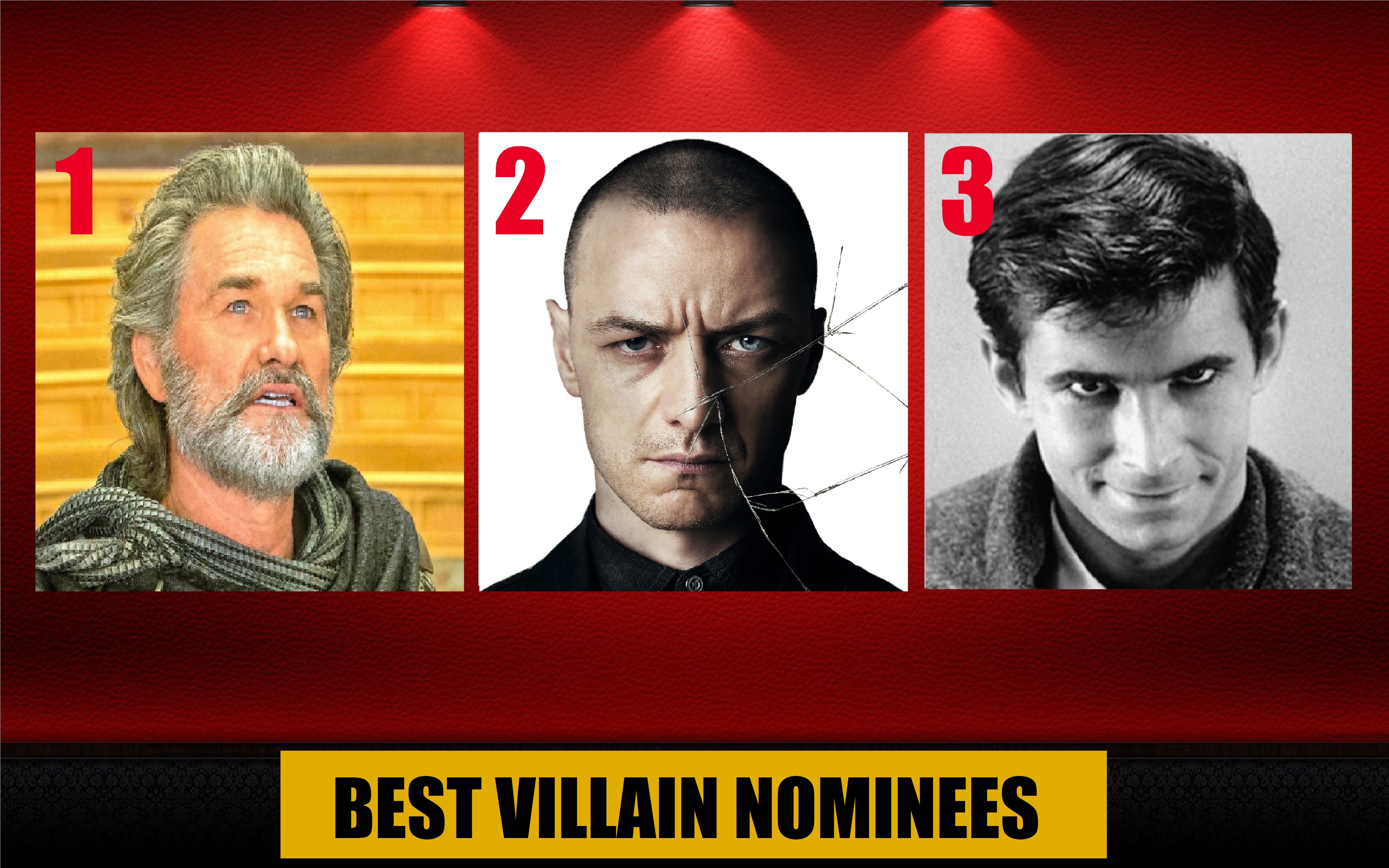 Juicy Awards V- Best Villain Nominees January 4, 2018 · by Harrison · in juicy awards V. · BEST VILLAIN NOMINEES: Ego, portrayed by Kurt Russell (Guardians of the Galaxy Vol. 2) Kevin Crumb, portrayed by James McAvoy (“Split”) Norman Bates, portrayed by Anthony Perkins (“Psycho” [1960]) Share this: Click to share on X (Opens in new window) X Like Loading... Related