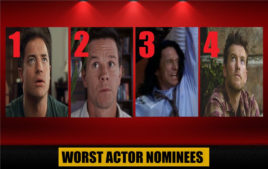 Juicy Awards V- Worst Actor Nominees January 23, 2018 · by Harrison · in juicy awards V. · WORST ACTOR NOMINEES: Brendan Fraser as DJ Drake (“Looney Tunes: Back in Action”) Mark Wahlberg as Elliot Moore (“The Happening” [2008]) Tommy Wiseau as Johnny (“The Room”) Sam Worthington as Mack Phillips (“The Shack”) Share this: Click to share on X (Opens in new window) X Like Loading... Related