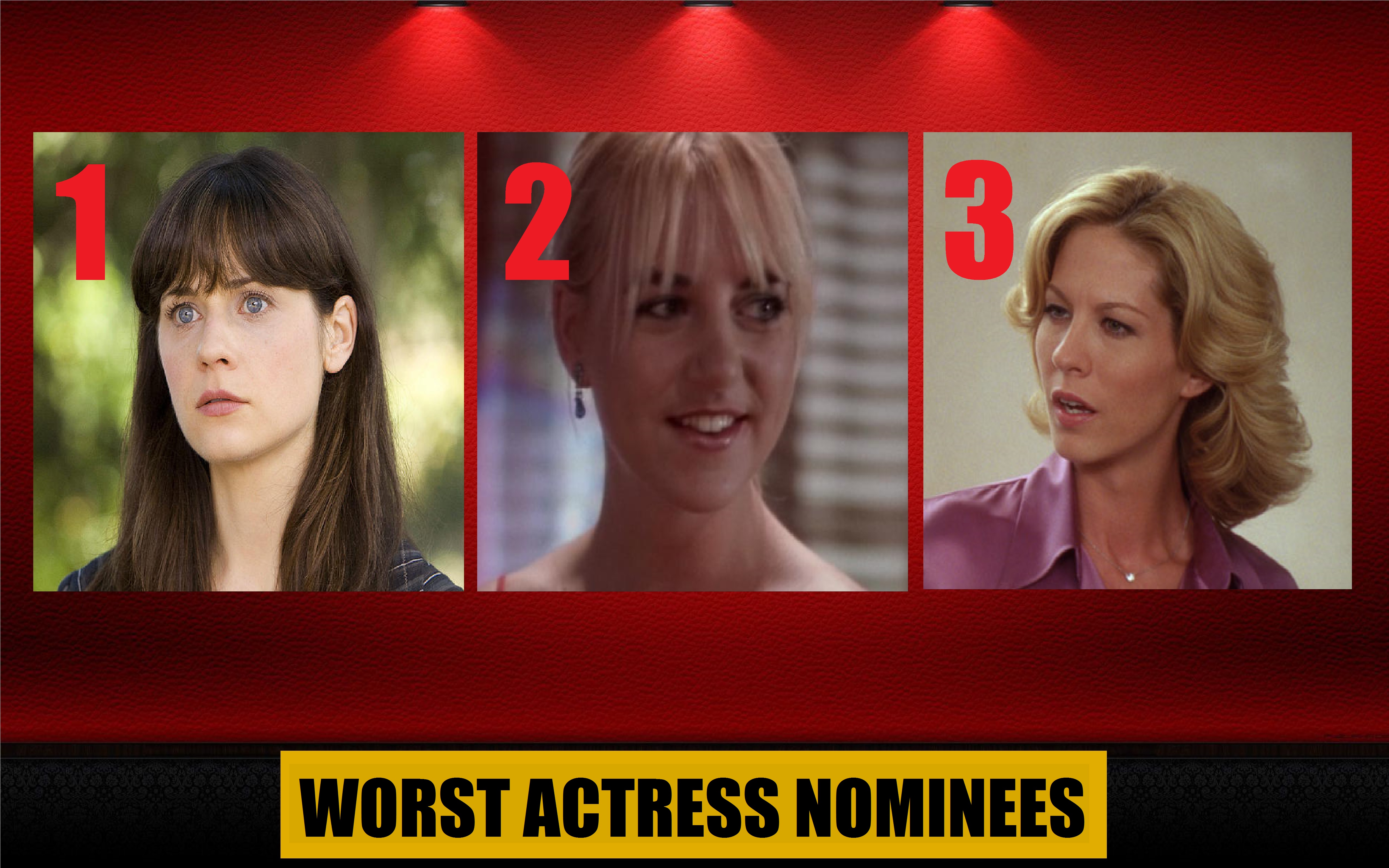 Juicy Awards V- Worst Actress Nominees January 23, 2018 · by Harrison · in juicy awards V. · WORST ACTRESS NOMINEES: Zooey Deschanel as Alma Moore (“The Happening” [2008]) Juliette Danielle as Lisa (“The Room”) Jenna Elfman as Kate (“Looney Tunes: Back in Action”) Share this: Click to share on X (Opens in new window) X Like Loading... Related