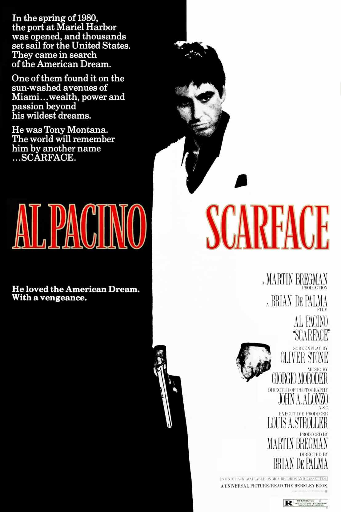 MOVIE REVIEW: “Scarface” stars Al Pacino (Serpico, The Godfather), Steven Bauer (Traffic, Primal Fear), Michelle Pfeiffer (One Fine Day, What Lies Beneath), Mary Elizabeth Mastrantonio (The Abyss, Robin Hood: Prince of Thieves), Robert Loggia (Big, Independence Day), Miriam Colon (Goal! The Dream Begins, Sabrina), F. Murray Abraham (The Grand Budapest Hotel, Amadeus), Paul Shenar (The Secret of NIMH, Raw Deal), Harris Yulin (Ghostbusters II, Clear and Present Danger), and Ángel Salazar (Carlito’s Way, Hot to Trot). It was directed by Brian De Palma (Mission: Impossible [1996], Dressed to Kill) and written by Oliver Stone (Platoon, JFK). In Miami 1980, a Cuban political refugee named Tony Montana (Pacino) sees his rise to fame in the cartel business as he is determined to be top dog. However, with great success comes great sacrifice.