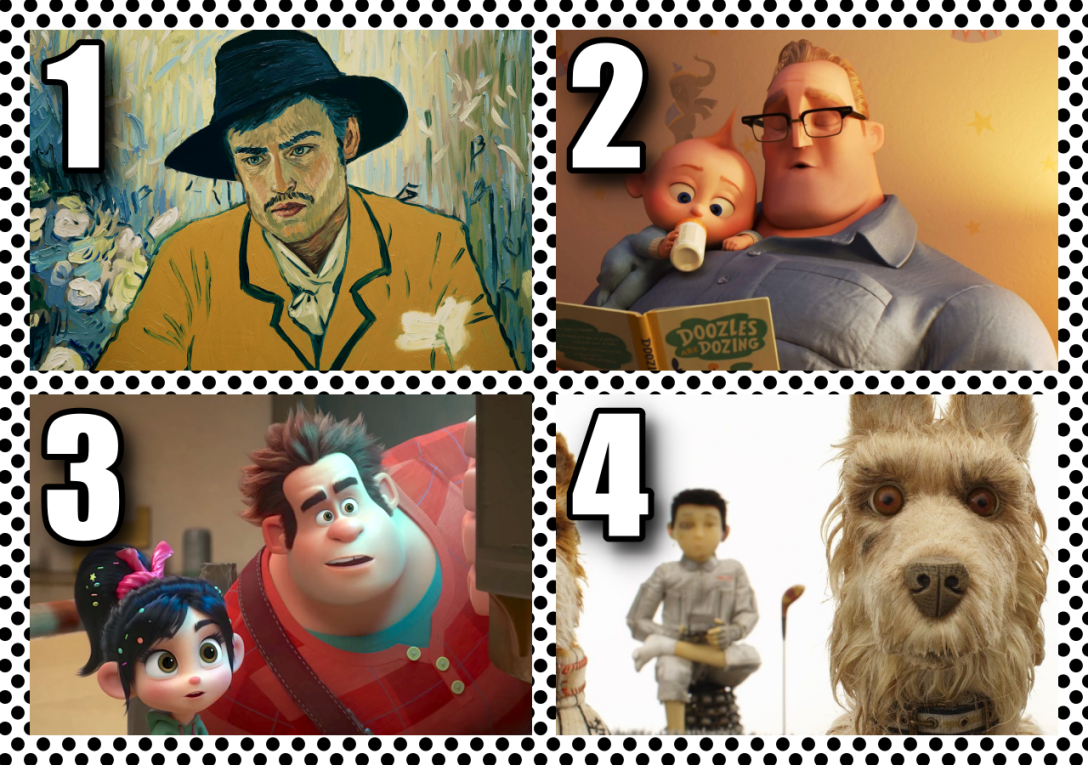 Juicy Awards VI- Best Animated Film Nominees January 3, 2019 · by Harrison · in Juicy Awards VI. · BEST ANIMATED FILM NOMINEES: “Loving Vincent” “Incredibles 2” “Ralph Breaks the Internet” “Isle of Dogs” Share this: Click to share on X (Opens in new window) X Like Loading... Related