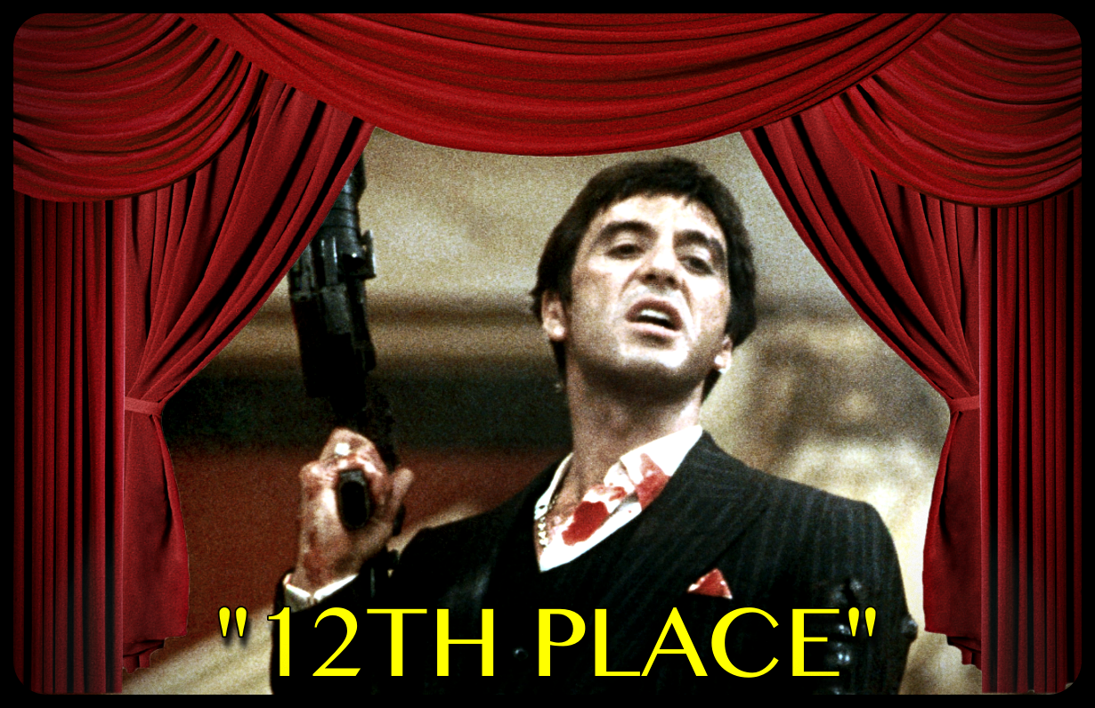 “Say hello to my little friend!” Al Pacino was ruthless; as was Brian De Palma’s fantastic direction in “Scarface.” I loved the sheer magnitude of this movie that displayed the success and eventual downfall of one of the biggest druglords in the state of Florida, Tony Montana. But, it wasn’t enough to pull in the win, as this brutal flick rests in 12th place.
