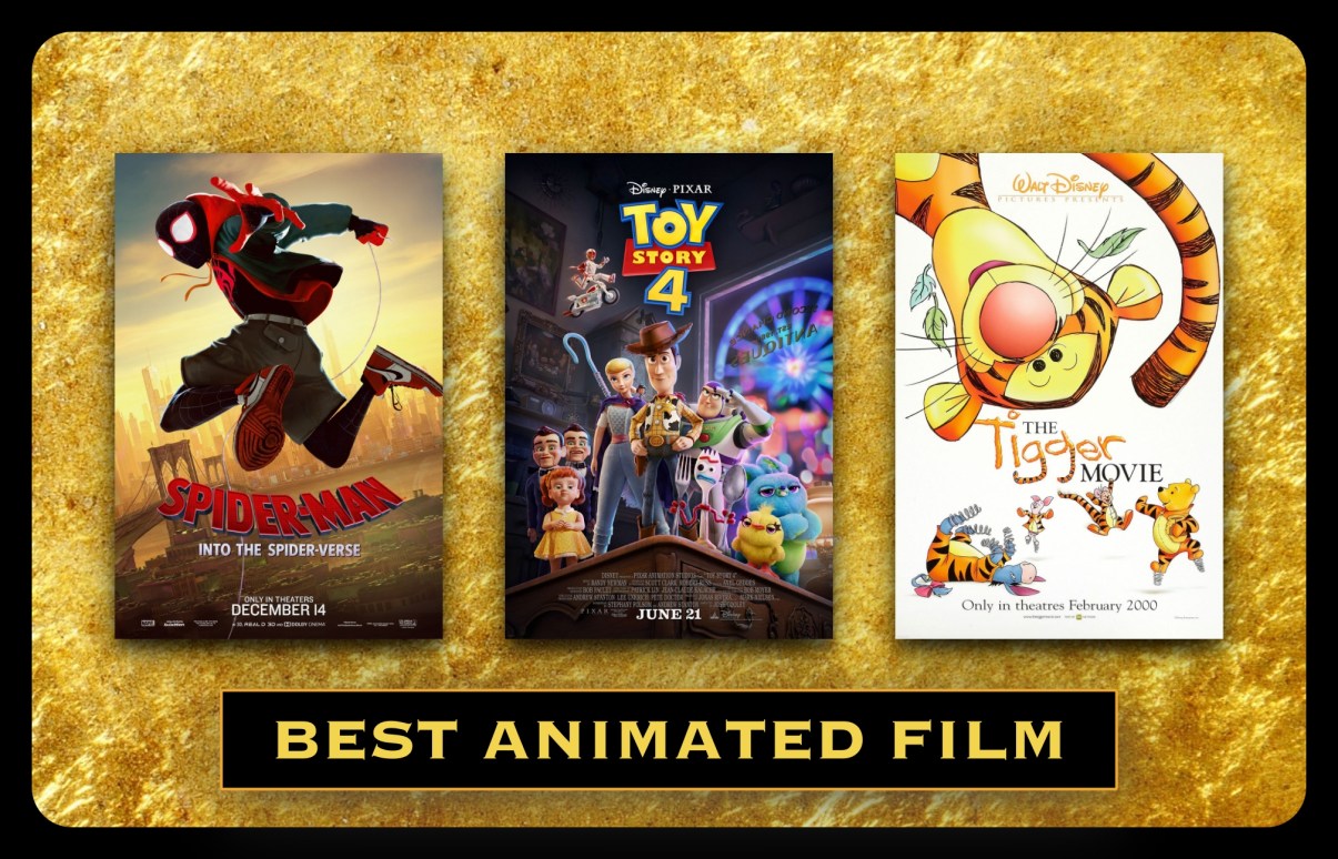 Juicy Awards VII- Best Animated Film Nominees January 7, 2020 · by Harrison · in January, Juicy Awards VII. · BEST ANIMATED FILM NOMINEES: “Spider-Man: Into the Spider-Verse” “Toy Story 4” “The Tigger Movie” Share this: Click to share on X (Opens in new window) X Like Loading... Related
