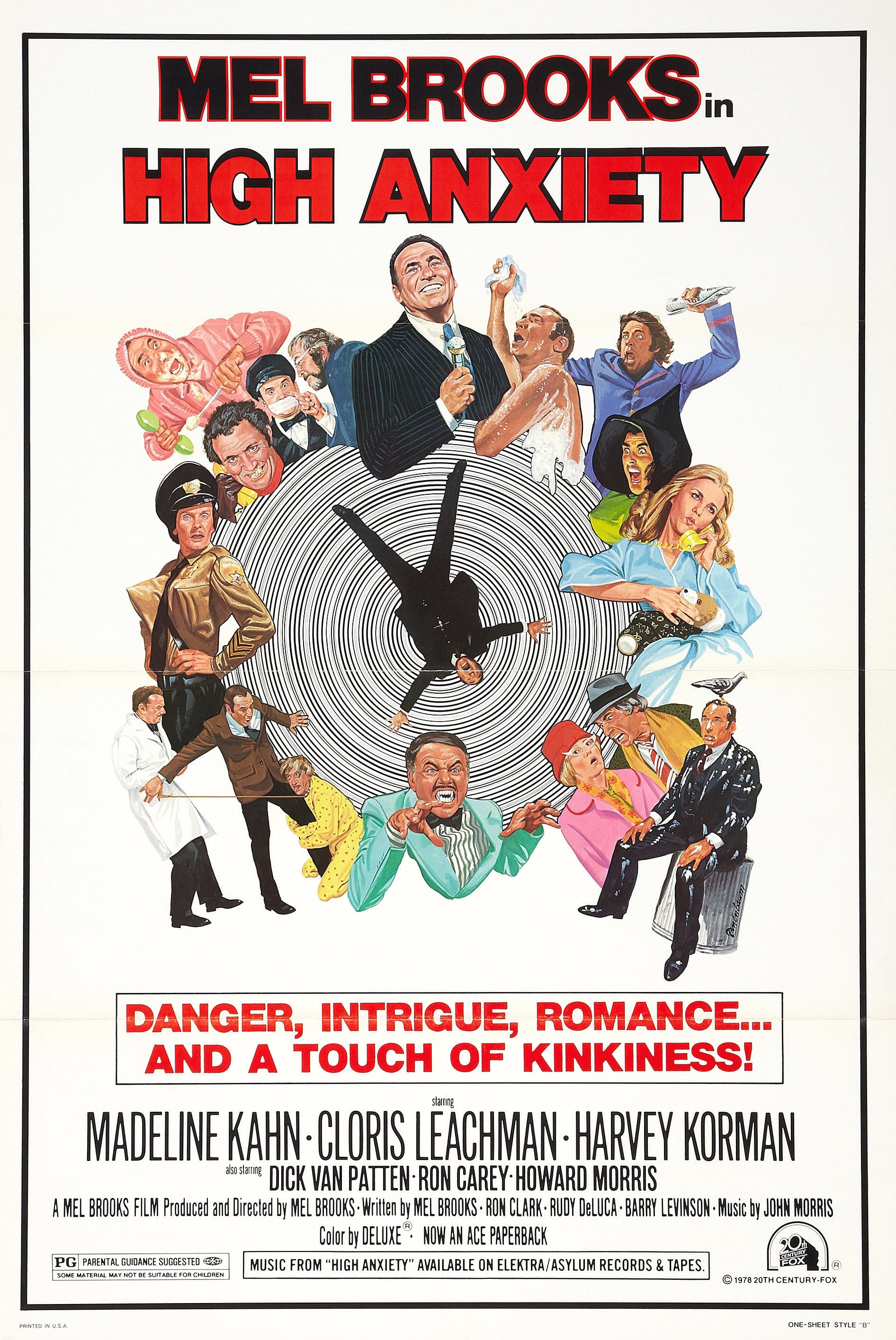 IN THE DIRECTOR’S CHAIR WITH MEL BROOKS REVIEW: “High Anxiety” stars Mel Brooks (Mr. Peabody & Sherman [2014], The Little Rascals [1994]), Madeline Kahn (Paper Moon, Clue), Cloris Leachman (The Last Picture Show, The Croods), Harvey Korman (The Carol Burnett Show [TV series], Jingle All the Way), Ron Carey (The Troublemakers, Lucky Luke), Howard Morris (Splash, The Andy Griffith Show [TV series]), Dick Van Patten (Westworld [1973], Soylent Green), Jack Riley (The Long Goodbye, Rugrats [TV series]), Charlie Callas (Switch [TV series], Crooks), Ron Clark (Top Gun, The Funny Farm), Rudy De Luca (Spaceballs, Million Dollar Mystery), and Barry Levinson (Bee Movie, Quiz Show). It is directed by Mel Brooks, who also wrote the screenplay with Ron Clark, Rudy De Luca, and Barry Levinson. Dr. Richard Thorndyke (Brooks), a psychiatrist with an immense fear of heights, arrives at the Psychoneurotic Insitute for the Very VERY Nervous to fill a position, only to discover something dark and twisted is going on behind the scenes.