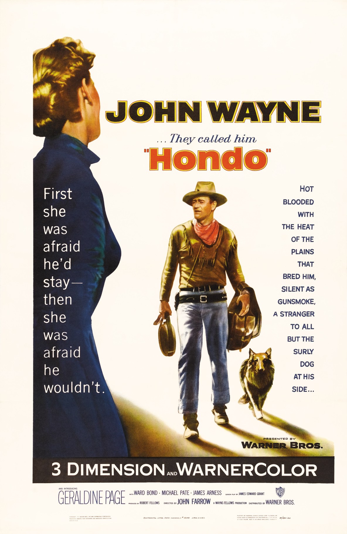 MOVIE REVIEW: “Hondo” stars John Wayne (True Grit [1969], Stagecoach [1939]), Geraldine Page (Sweet Bird of Youth, The Trip to Bountiful), Ward Bond (The Quiet Man, The Maltese Falcon), Michael Pate (The Court Jester, Matlock Police [TV series]), James Arness (Gunsmoke [TV series], Them!), Lee Aaker (Destry, Bye Bye Birdie), Rodolfo Acosta (And Should We Die, Rio Conchos), Leo Gordon (Maverick, The Haunted Place), and Tom Irish (Father of the Bride [1950], Seven Angry Men). It is directed by John Farrow (Around the World in 80 Days [1956], Wake Island), with the screenplay being written by James Edward Grant (The Alamo, The Comancheros). Hondo Lane (Wayne), an army dispatch rider, stumbles upon a lone homestead on Apache territory. With the United States having broken their treaty with the Apache, Hondo seeks to save the woman and kid living on the farm from vengeful Indians.