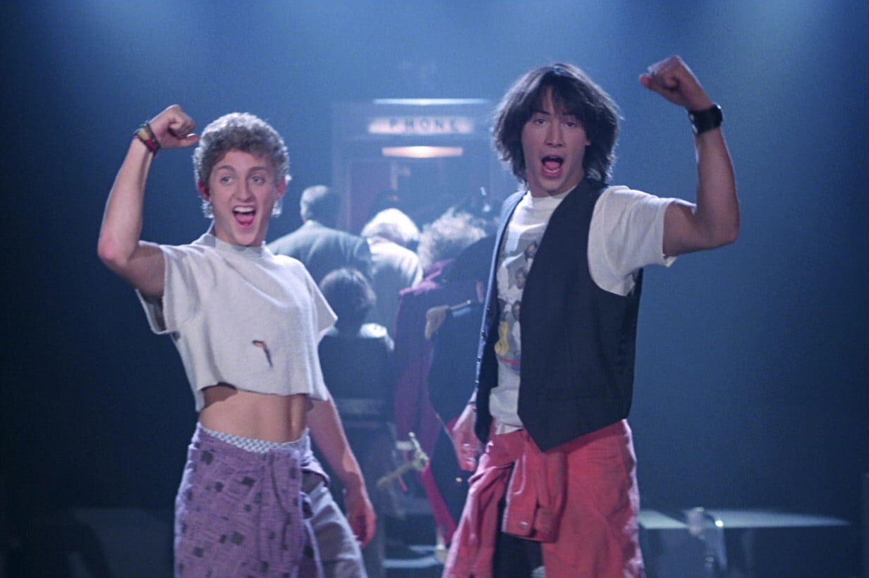 MOVIE REVIEW: “Bill & Ted’s Excellent Adventure” stars Keanu Reeves (The Matrix, John Wick), Alex Winter (Haunted Summer, Freaked), George Carlin (Dogma, Jersey Girl), Terry Camilleri (The Truman Show, Knowing), Dan Shor (TRON, Air Force One), Tony Steedman (Scrooged, Citizen Smith [TV series]), Rod Loomis (Body Double, The Beastmaster), Al Leong (Big Trouble in Little China, Die Hard), Jane Wiedlin (Clue [1985], Star Trek IV: The Voyage Home), Robert V. Barron (The Wild Wild West [TV series], Robotech [TV series]), Clifford David (Signs, Kinsey), Hal Landon Jr. (Eraserhead, The Artist), Bernie Casey (Never Say Never Again, Revenge of the Nerds), Amy Stoch (Summer School, Mr. Student Body President [TV series]), and J. Patrick McNamara (Close Encounters of the Third Kind, 1941). It is directed by Stephen Herek (Critters, Mr. Holland’s Opus) and is written by Chris Matheson (A Goofy Movie, Imagine That) and Ed Solomon (Men in Black, Now You See Me). Two wannabe rockers Bill (Winter) and Ted (Reeves) travel through time to bag some historical figures for a history assignment that will make or break their final grade.