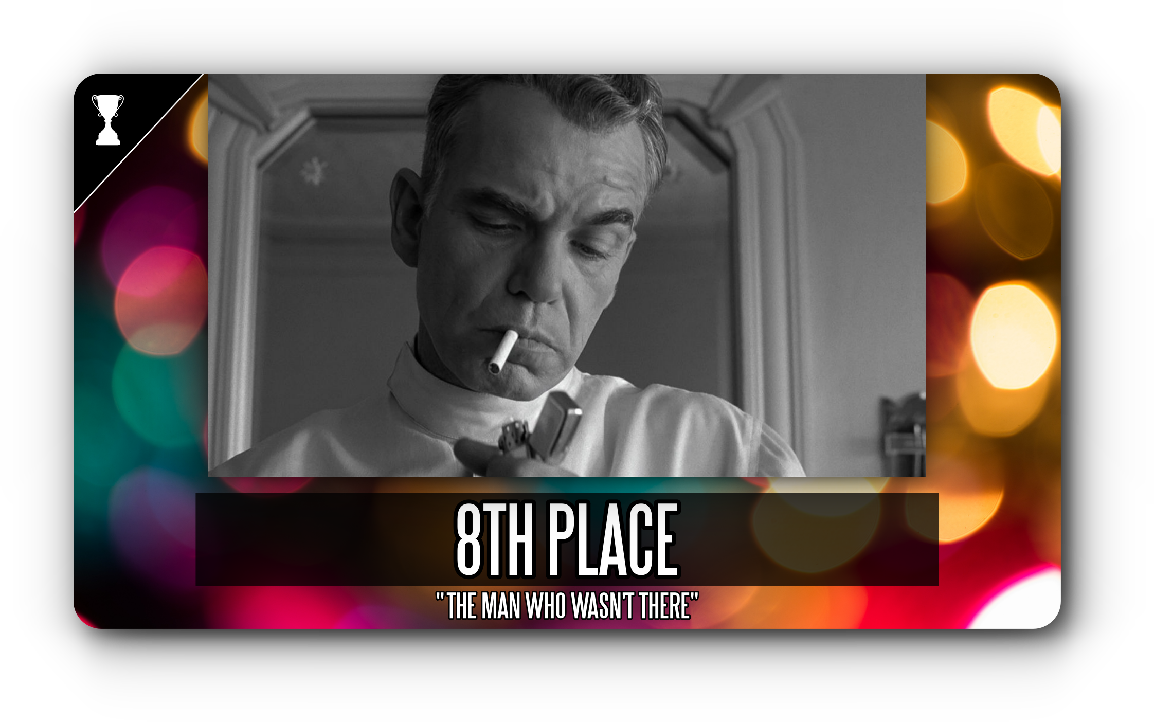 The Coen brothers tackled noir with “The Man Who Wasn’t There,” a beautifully shot, terrifically acted film that works on all levels. It was a treat to watch unfold, culminating to a rather depressing conclusion. And while it certainly fought a good fight, it does not move on in this competition.