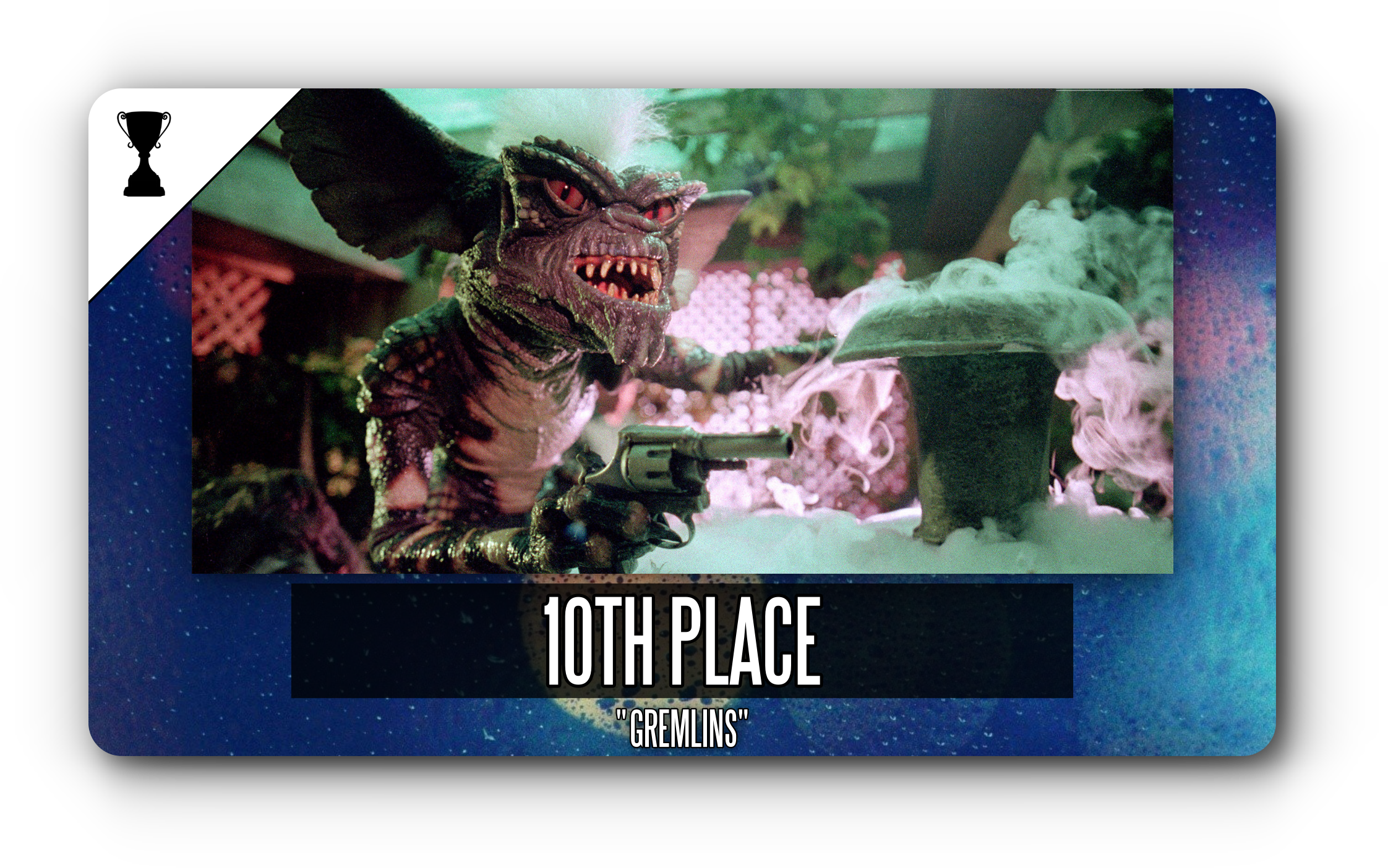 What a fun, wacky flick. “Gremlins” is entertaining for the whole family come Christmas time (what an odd holiday to set this in), fit with awesome creature designs, zany situations, and a great score by Jerry Goldsmith. Of course, its campiness is what really holds it back from being named number one (that and… well, the other movies are better).