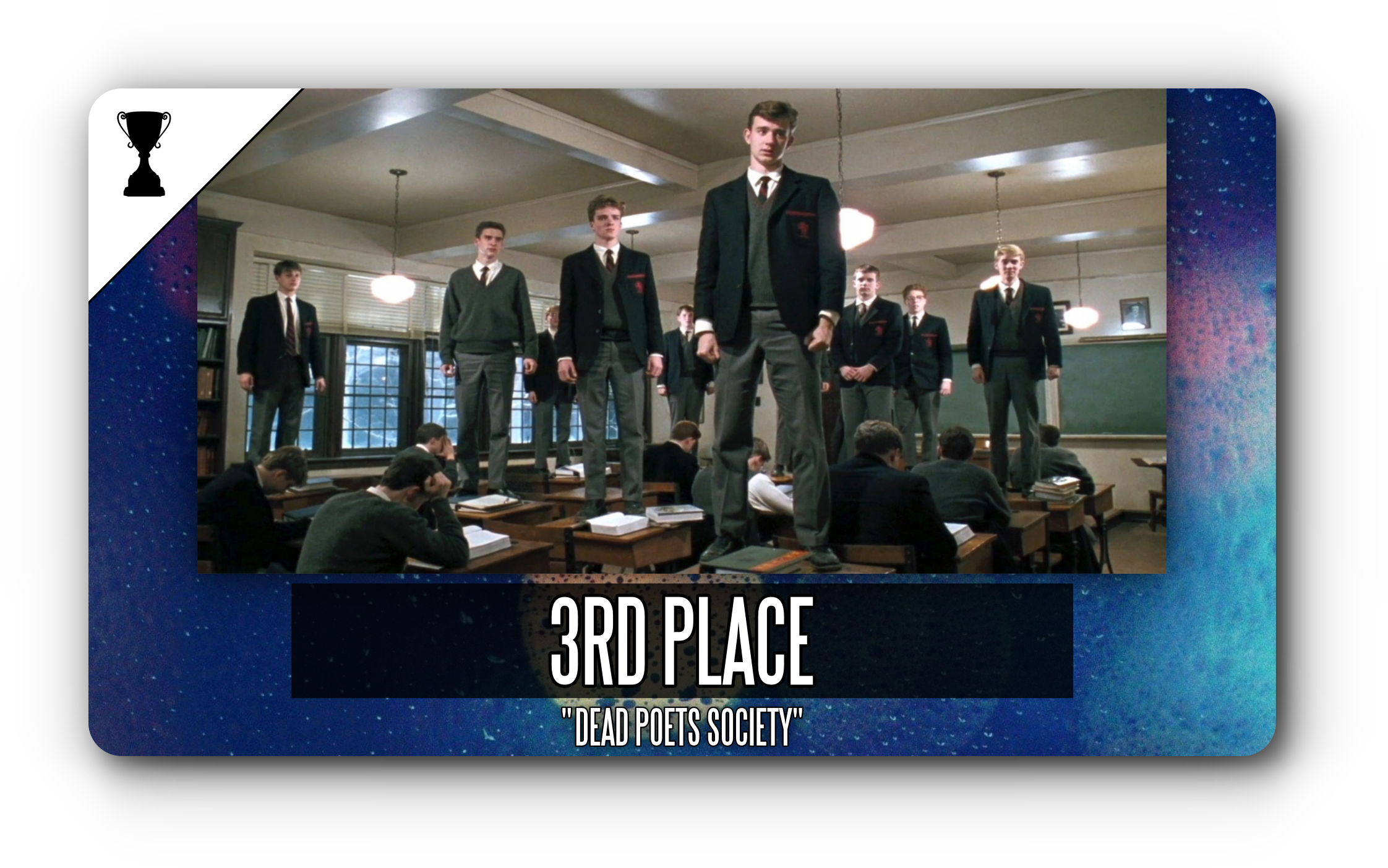 What a moving picture (no pun intended). I loved watching this film and the emotion behind it. Robin Williams does what he does best, and the young talent that fills the frame is fantastic. Not to mention the aesthetic and music of it all. “Dead Poets Society” is a classic through and through, with an ending that will leave a lasting impact. It doesn’t move on in this race, but it is most definitely worth the watch. “Carpe diem.”