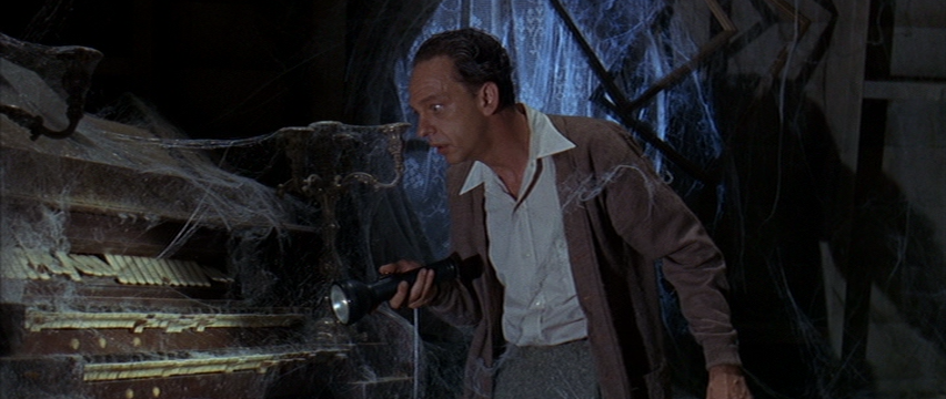“The Ghost and Mr. Chicken” has a few moving parts to it, outside of Knotts going into the house. There’s a love interest in Joan Staley’s Alma Parker, an evil old man looking to transfer the deed of the haunted house to himself (so he can tear it down), and a whole town to see either thrown into chaos or unity in deeming the haunted house as a place to be preserved. The direction of it all is akin to television or stage play, with many of the sets being shot in a soundstage and the blocking working in favor to turning out toward the audience. It’s what’s expected when you see a big comedy from television writers shot in the 60’s, and I enjoyed it. The sets were decorated wonderfully and the acting, while almost all caricatures, served the charm of this set-up well.