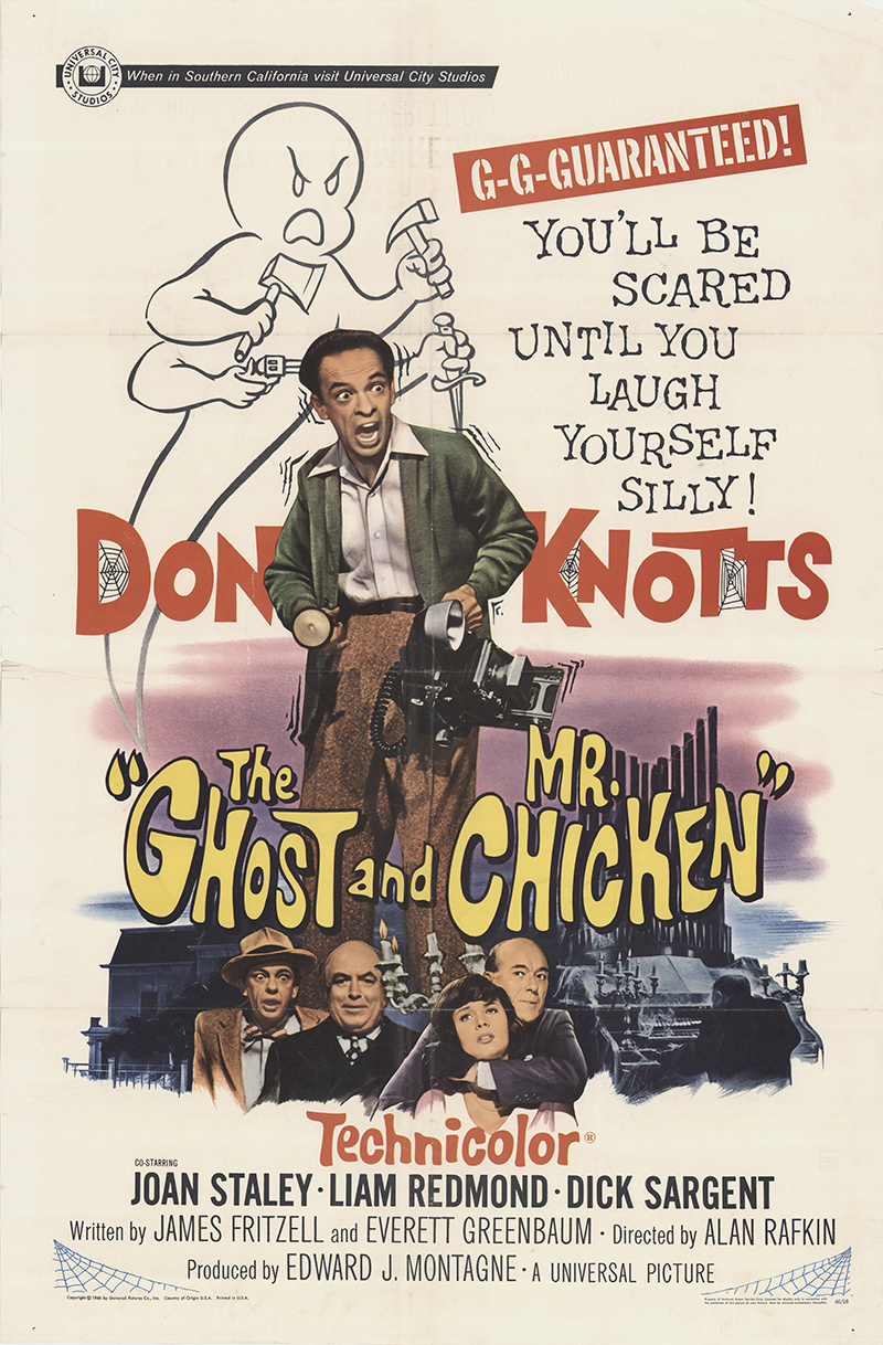 MOVIE REVIEW: “The Ghost and Mr. Chicken” stars Don Knotts (The Andy Griffith Show [TV series], Pleasantville), Joan Staley (Cape Fear [1962], Roustabout), Liam Redmond (Barry Lyndon, The Diplomatic Corpse), Dick Sargent (Bewitched [TV series], Operation Petticoat), Skip Homeier (The Gunfighter, The Tall T), Reta Shaw (Mary Poppins [1964], Picnic), Lurene Tuttle (Psycho [1960], Ma Barker’s Killer Brood), Philip Ober (From Here to Eternity, North by Northwest), Harry Hickox (The Music Man [1962], Cavalcade of America), and James Millhollin (No Time for Sergeants, The Twilight Zone [TV series]). It is directed by Alan Rafkin (The Shakiest Gun in the West, The Bob Newhart Show [TV series]), and written by James Fritzell (The Andy Griffith Show [TV series], MASH [TV series]) and Everett Greenbaum (The Reluctant Astronaut, The Real McCoys [TV series]).